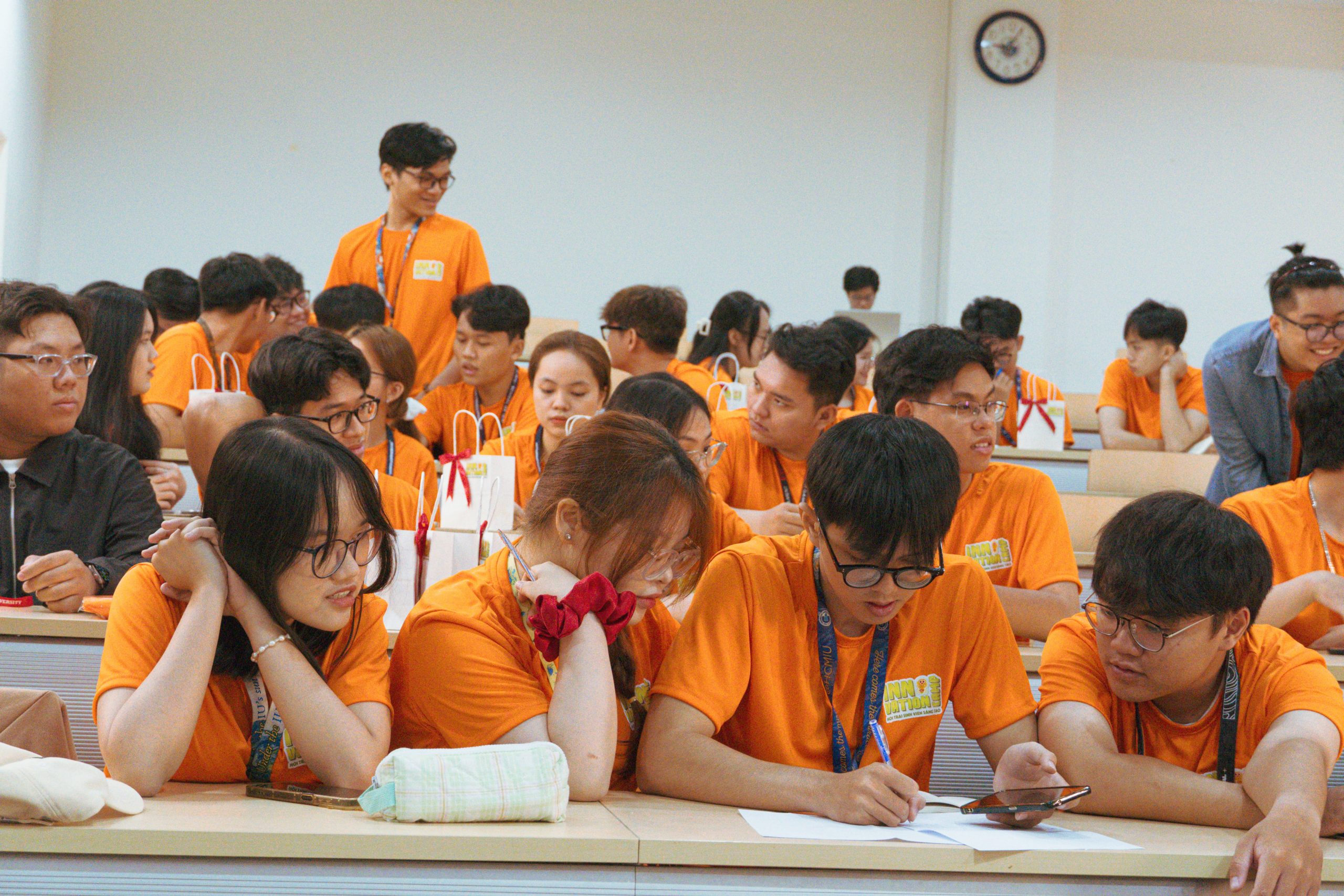 Các trại sinh tham gia buổi tập huấn kỹ năng phân tích vấn đề, nằm trong chuỗi hoạt động sôi nổi của Innovation Camp năm nay.