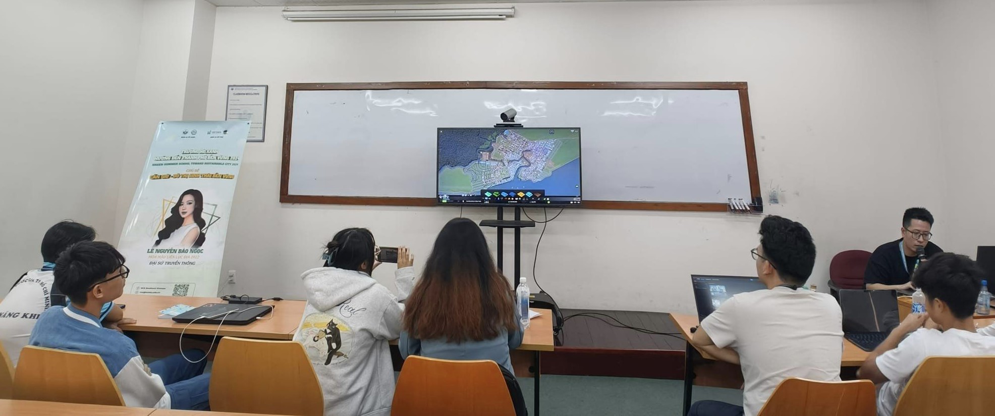 ThS. Nguyễn Nhật Thoại – Chuyên viên Trung tâm Đổi mới Sáng tạo và Chuyển giao Công nghệ – hướng dẫn các đội thi cách sử dụng công cụ Cities: Skylines để thiết kế đồ án quy hoạch.