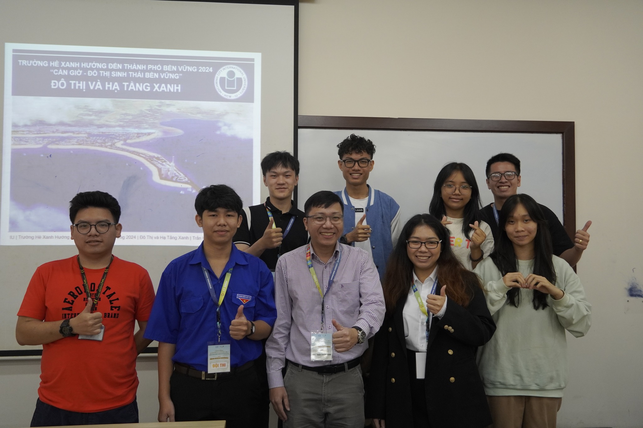 ThS. Trần Hoàng Nam – Trưởng ngành Bất động sản, Khoa Kinh tế, Trường Hm88 nhacai cá cược thể thao Kinh tế – Tài chính TP.HCM – chụp ảnh lưu niệm cùng các thí sinh trong buổi tập huấn Đô thị và Hạ tầng Xanh.
