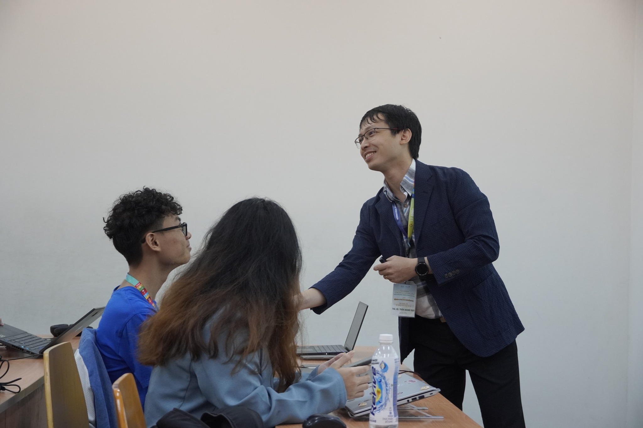 ThS. Trần Quang Đạo – Giảng viên Viện ISB, Hm88 nhacai cá cược thể thao Kinh tế TP.HCM đặt câu hỏi cho em Mai Viết Khôi – học sinh Trường THPT Lê Quý Đôn trong buổi tập huấn Kỹ năng thuyết trình và trình bày dự án.