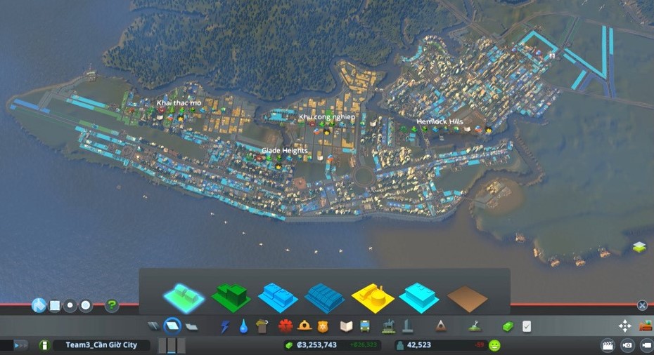 Hình ảnh Quy hoạch khu vực phía Nam huyện Cần Giờ trên nền tảng Cities: Skylines của đội PEP-GREEN với các thành viên đến từ Ngành Logistics và Quản lý Chuỗi cung ứng Trường Hm88 nhacai cá cược thể thao Kinh tế – Tài chính TP.HCM và Khoa Kỹ thuật và Quản lý Xây dựng, Trường Hm88 nhacai cá cược thể thao Quốc tế.